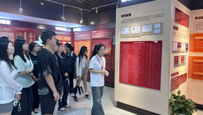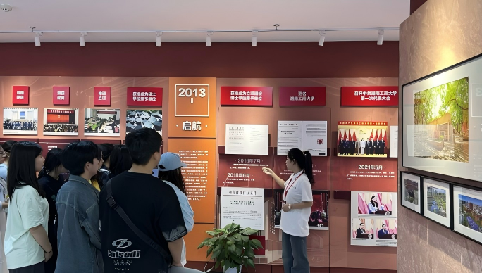 校史馆展厅分为“溯源”“汇流”“扬帆”“启航”四个单元,通过文字、图片、电子书、多媒体显示屏、电子沙盘、立体造型等多种形式充分展示学校建校的光辉历程与办学成就。步入序厅,鎏金篆刻的“厚德博学 笃行自强”校风与“至诚至信 为实为新”校训在灯光下熠熠生辉,既凝结着办学初心,更彰显着新时代的育人追求。在讲解员的带领下,学员们频频驻足,认真聆听讲解,或凝视展品,或拍照留影,时而低声交流,时而感慨万千,从身临其境中感悟学校七十余年来砥砺奋进、薪火相传的发展历程,在历史与现实的交响中读懂“经世致用”的湖湘精神,体悟“为党育人、为国育才”的使命担当。