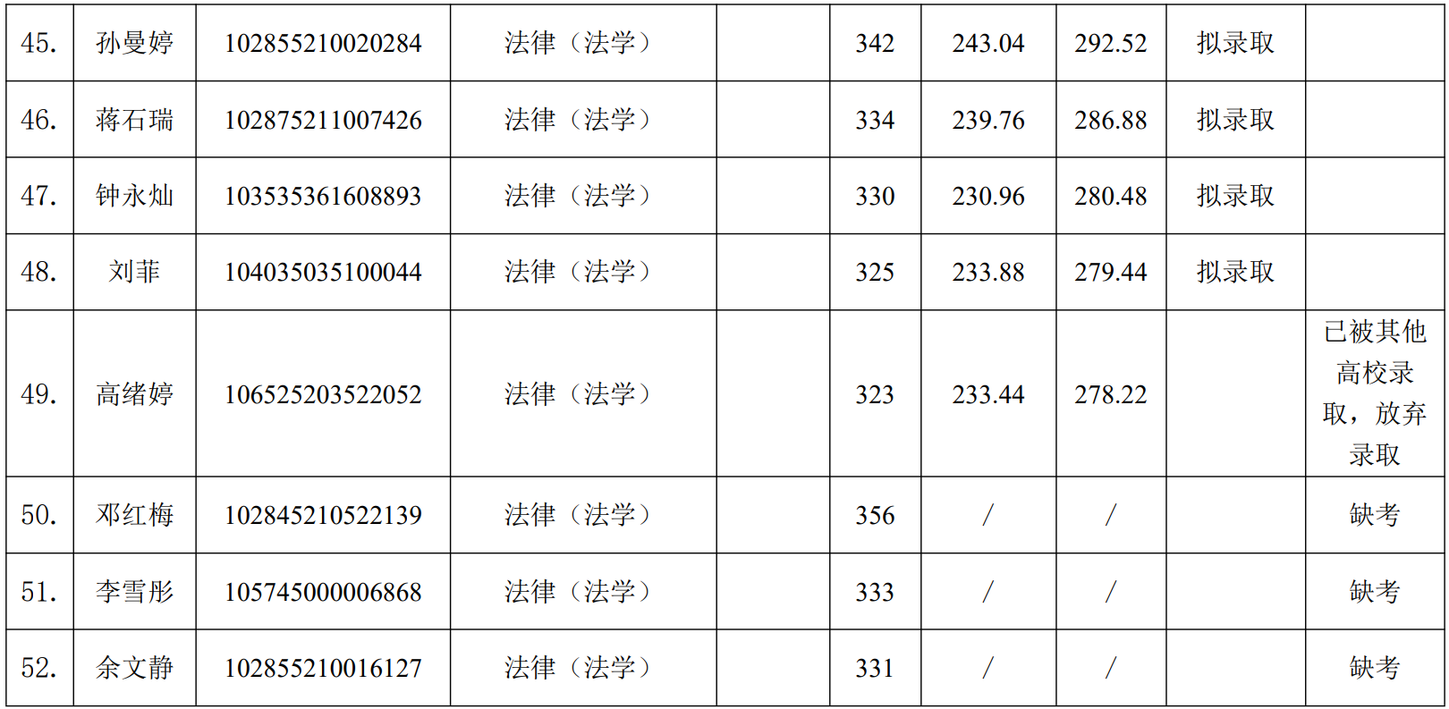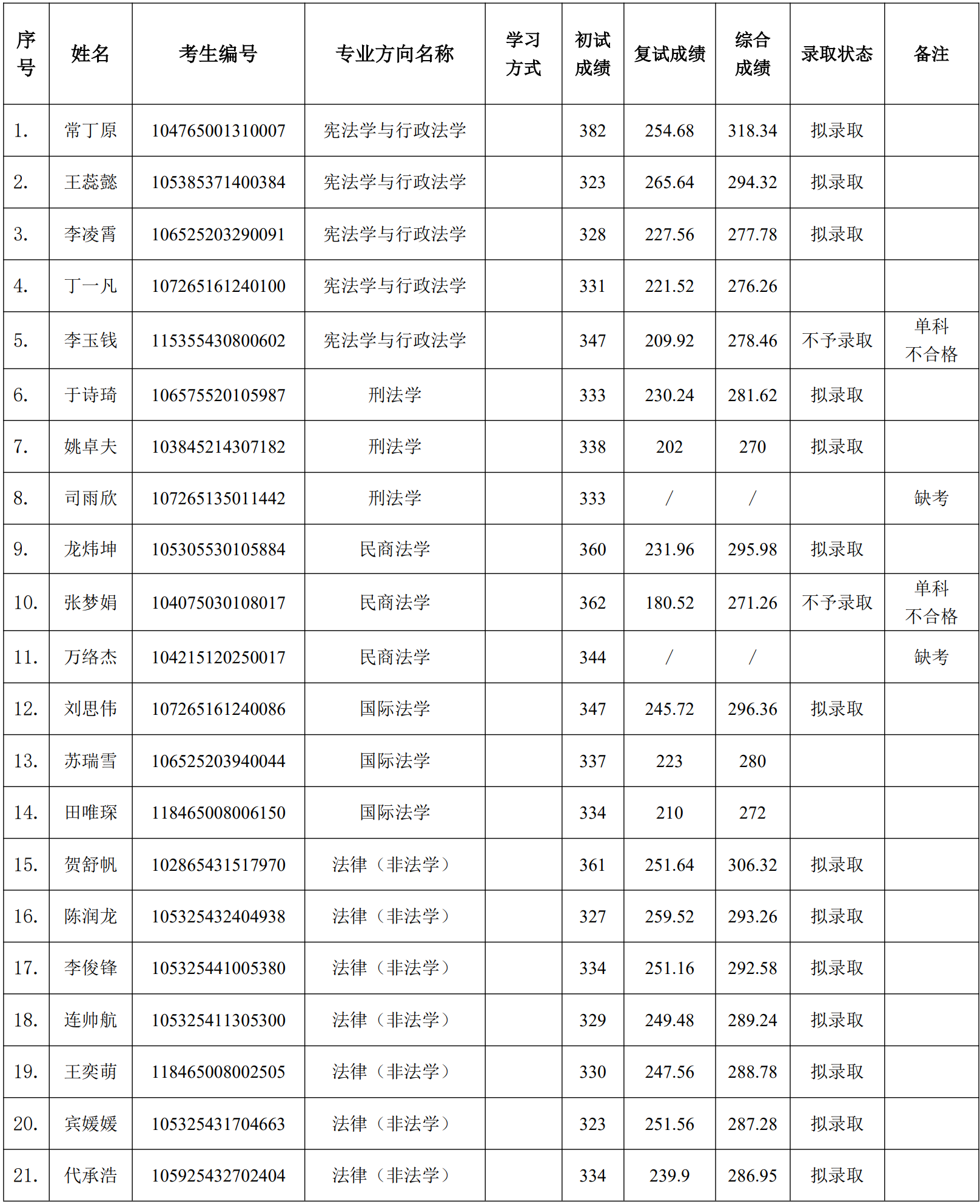 根据《湖南工商大学法学院2025年硕士研究生复试录取工作方案》,经研究生招生工作小组组织复试,现公示湖南工商大学法学院2025年硕士研究生调剂复试结果,公示期为2025年4月14日—4月16日,公示期内如有异议,请向法学院研究生办公室反映。(联系电话:0731-88688310)